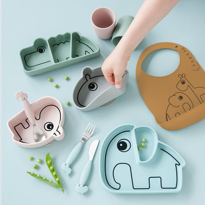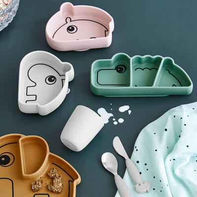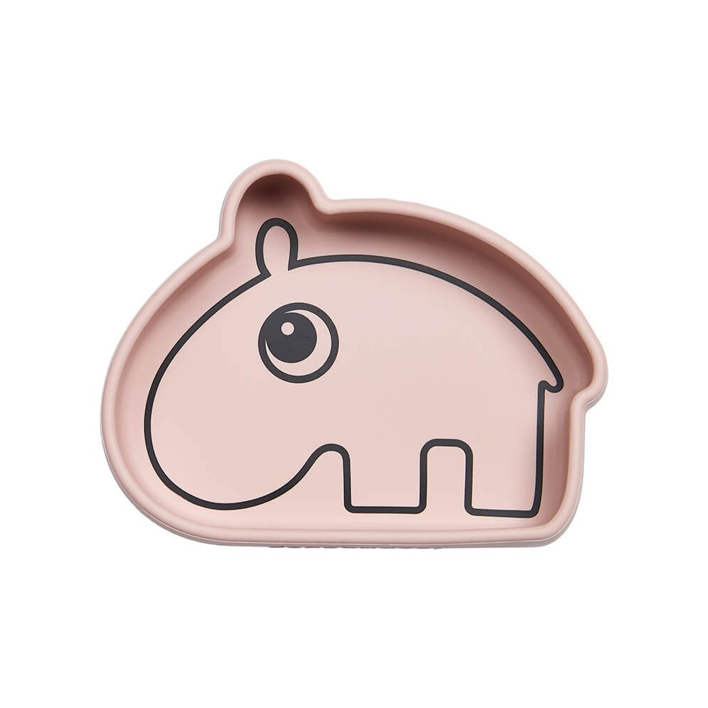 Bonito y práctico bol de silicona stick & stay con forma de rinoceronte. Fabricado de silicona 100% de grado alimenticio y libre de BPA.
