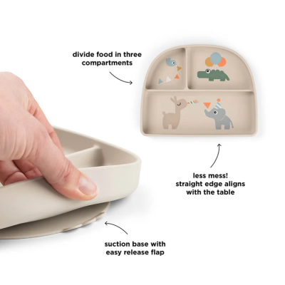 La base de succión evita que los peques empujen, vuelquen o tiren el plato.