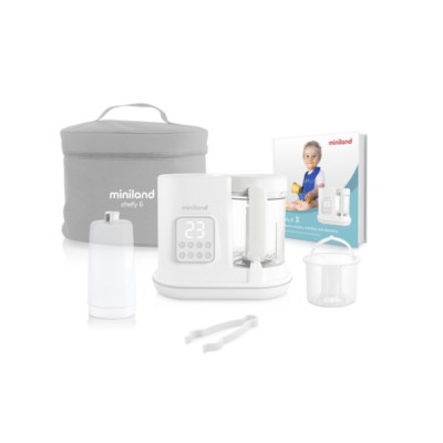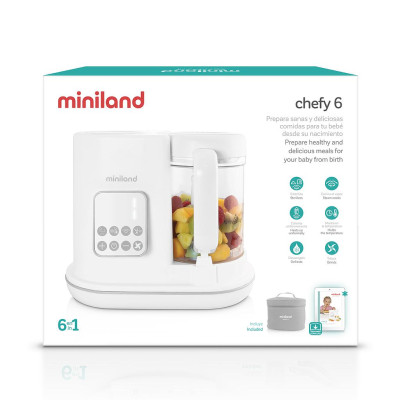 Robot de cocina multifuncional 6 en 1. chefy 6 es un completo robot de cocina de diseño compacto y con grandes prestaciones. Además, dispone de un completo libro de recetas saludables descargable a través de nuestra app eMyBaby. Con chefy 6 podrás cocinar y calentar alimentos al vapor, incluyendo biberones y potitos, esterilizar biberones y accesorios, descongelar de forma homogénea, triturar y mantener la temperatura de los biberones.