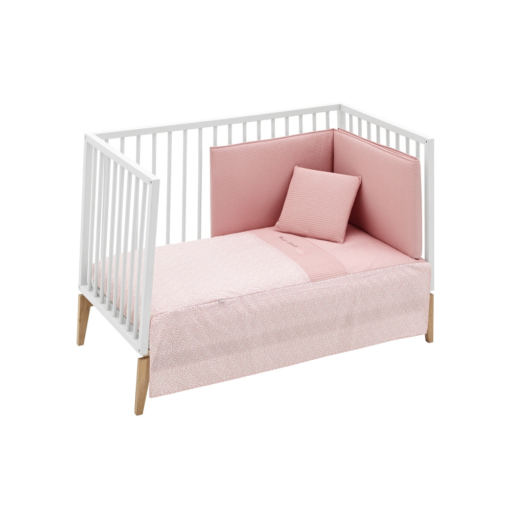 Juego de 2 piezas para vestir la cuna, compuesto por colcha invierno/verano más protector incluye un bonito cojín bordado.