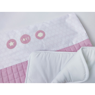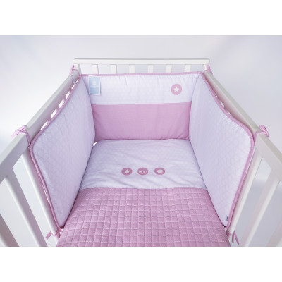 Juego de 2 piezas para vestir la cuna, compuesto por colcha invierno/verano más protector incluye un bonito cojín bordado.
