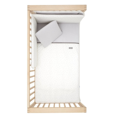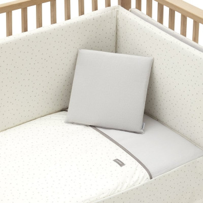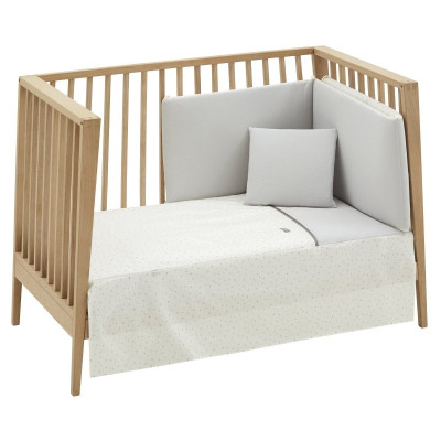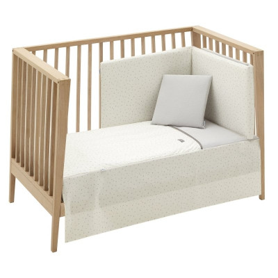 Juego de 2 piezas para vestir la cuna, compuesto por colcha invierno/verano más protector incluye un bonito cojín bordado.