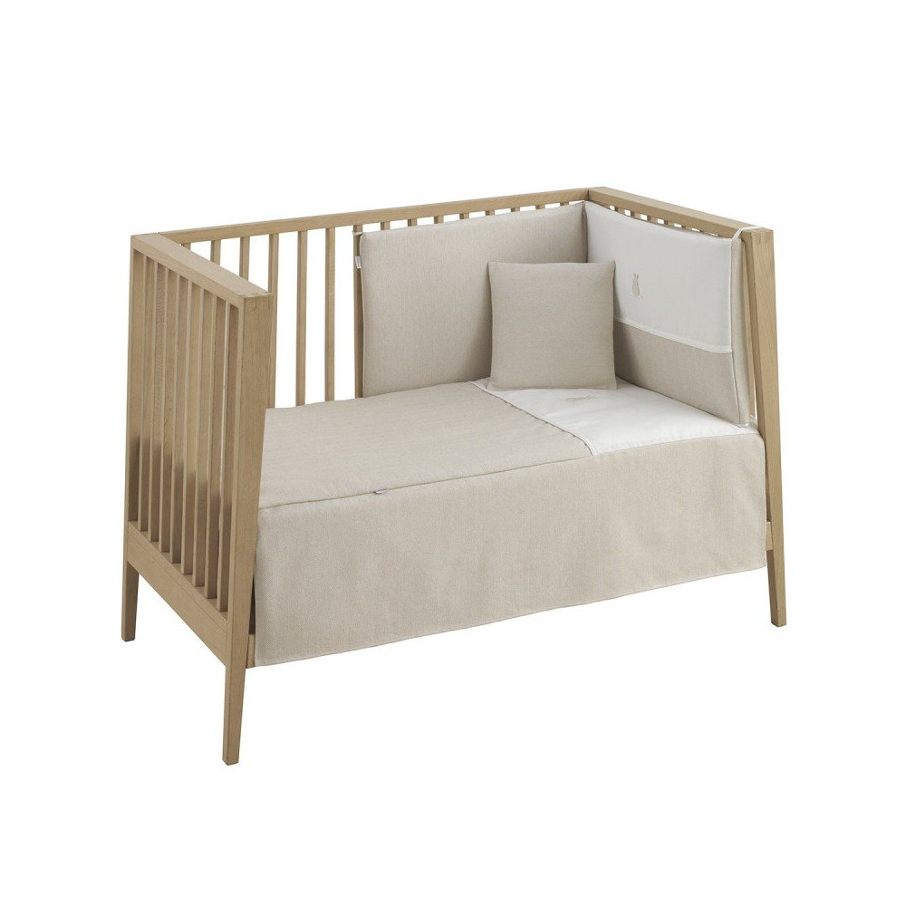 Juego de 2 piezas para vestir la cuna, compuesto por colcha invierno/verano más protector incluye un bonito cojín bordado.