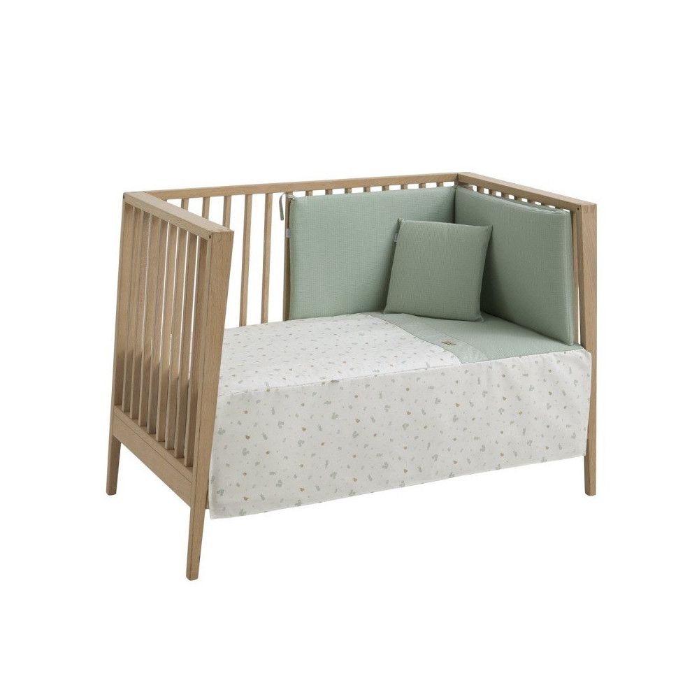 Juego de 2 piezas para vestir la cuna, compuesto por colcha invierno/verano más protector incluye un bonito cojín bordado.