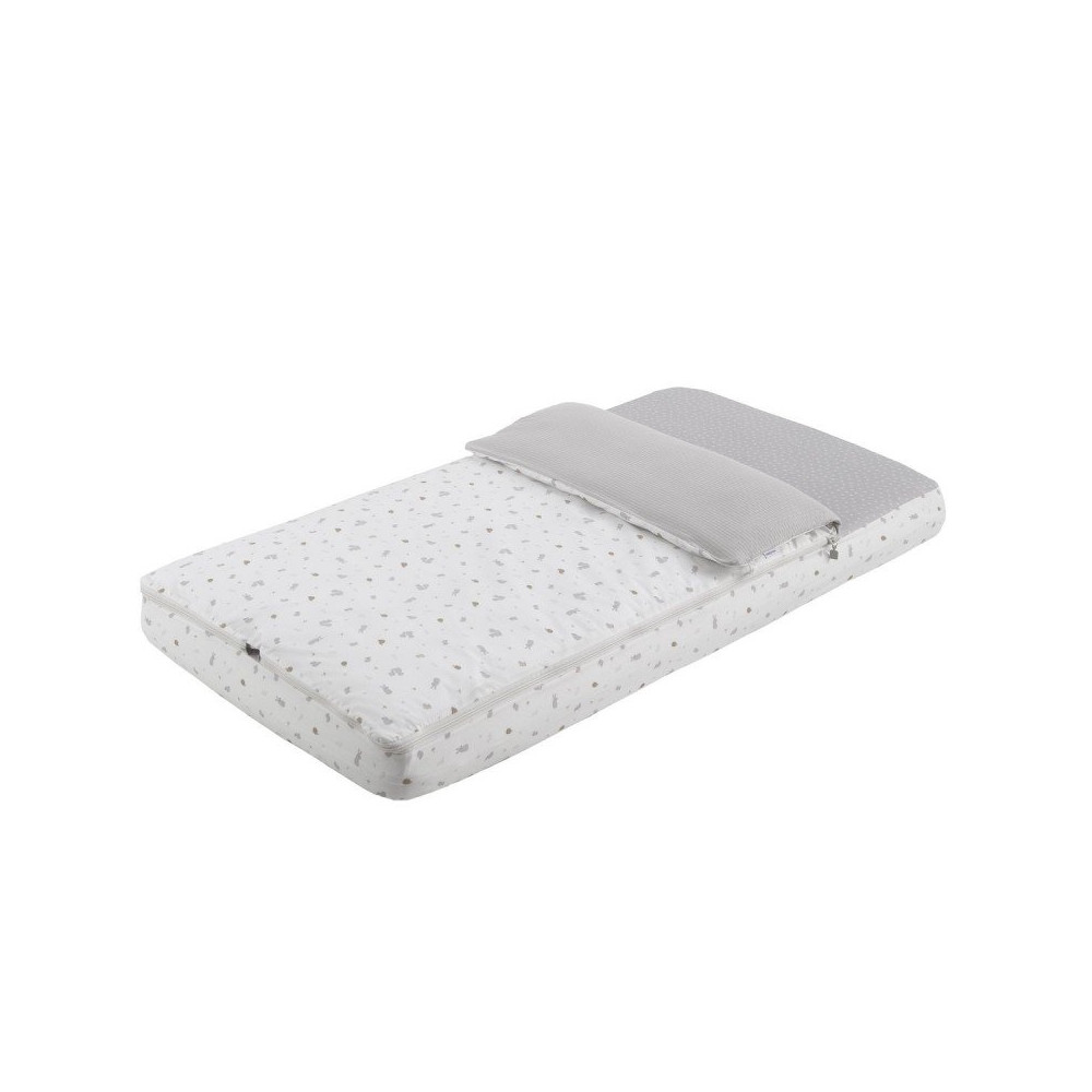 Además el saco cuenta con dos características que lo hacen especialmente práctico: el sencillo sistema de cierre mediante doble cremallera y la zona elástica del contorno inferior que sirve para ajustarlo al colchón.