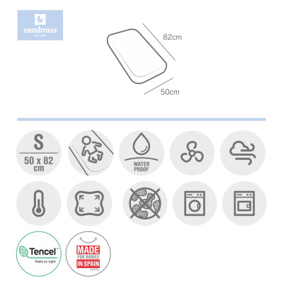 La sábana ajustable con fibras de TENCEL "! (para minicuna) de Cambrass funciona como una práctica bajera al adaptarse al colchón por los laterales con su goma elástica, es impermeable y transpirable. Su fabricación con fibras deTENCEL 100% garantiza el confort y el bienestar durante el descanso por su impermeabilidad y transpiración, además ofrece una protección antimicrobiana de larga duración, evita la aparición de malos olores, es hipo alergénica y termorreguladora. Fibra botánica y ecológica que aporta absorción, suavidad y frescura.