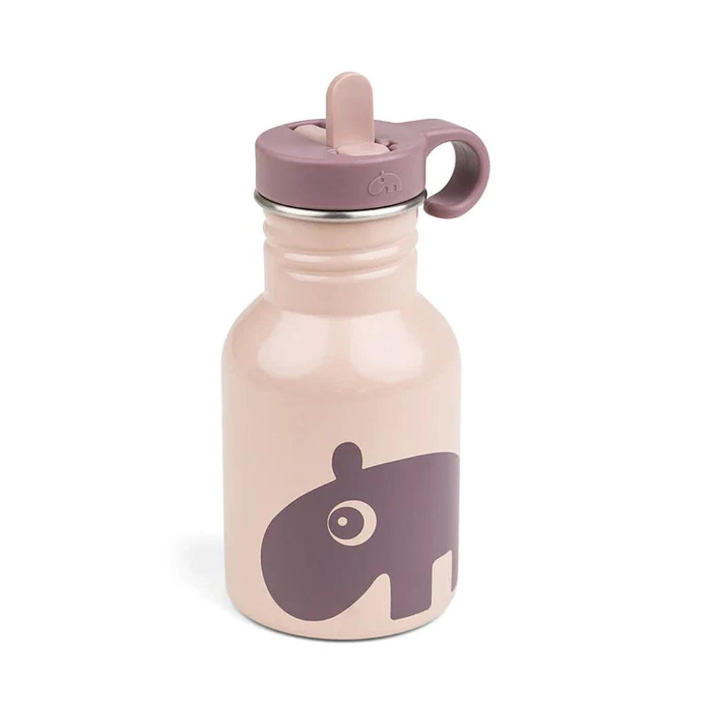El práctico frasco de metal en tonos empolvados está decorado con el adorable Ozzo.