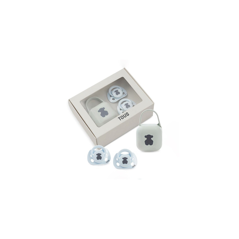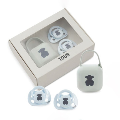TOUS Set 2 chupetes 0 meses+, cajita porta chupete Celeste