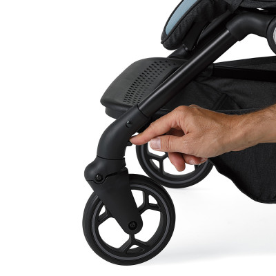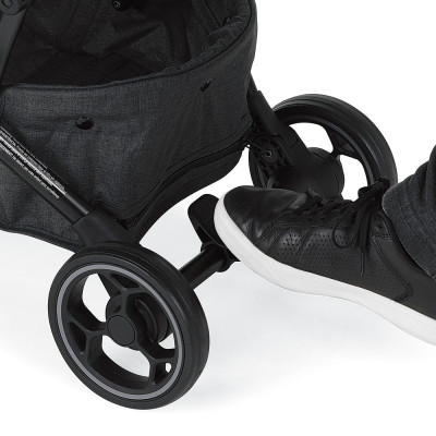 • Cesto en tejido y freno de acción simultánea en ruedas traseras.