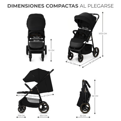 Solo necesitas unos segundos para plegar el carrito mientras sujetas al niño con la otra mano.