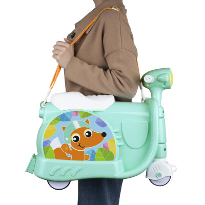 La Maleta de Rodante Ride and Roll Fox reúne lo mejor de la diversión y la funcionalidad. Este hermoso diseño de Vespa para montar cuenta con un asiento moldeado, manillares de fácil agarre con dirección, tres ruedas de goma para reducir el ruido del piso y una cómoda correa desmontable para transportar/tirar con hebilla ajustable.