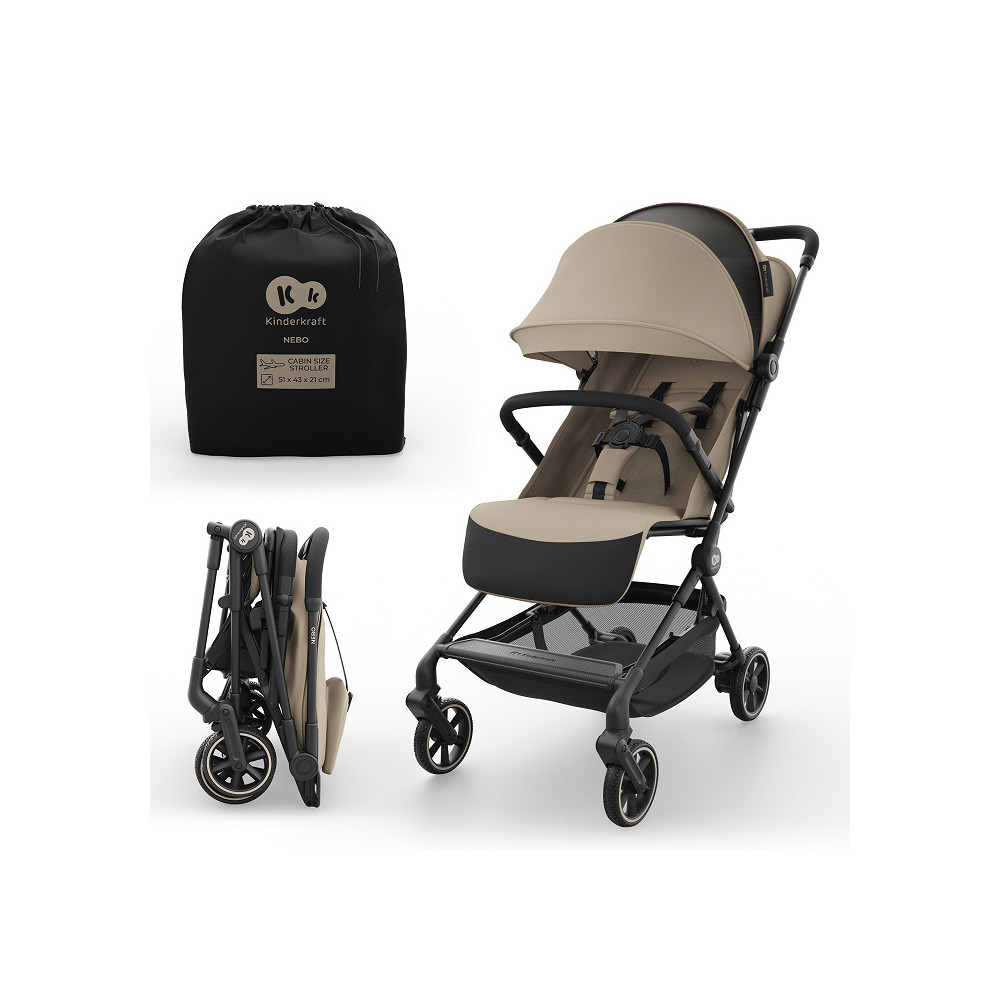 Una vez plegado, puedes llevar NEBO cómodamente en el hombro, como un equipaje de cabina clásico. El set incluye una bolsa de transporte y una correa para el hombro para facilitar el movimiento con el carrito sobre la marcha. NEBO te sigue suavemente a través del aeropuerto, los controles de seguridad o las escaleras. Puedes llevar a tu hijo, documentos o una maleta, mientras el carrito se mantiene completamente bajo control y siempre listo para usar.