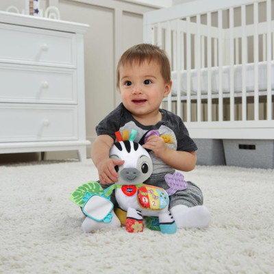 Cebra de peluche interactiva, Juguete para el carrito bebés +3 meses.