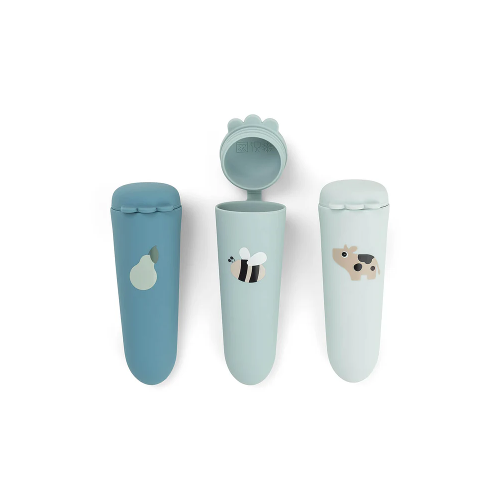 Da rienda suelta a tu creatividad en la cocina y refréscate con delicias caseras utilizando nuestros divertidos y flexibles polos de silicona. Este paquete de 3 te permite rellenar, congelar y disfrutar de tus propios polos, una y otra vez. Deje que los más pequeños exploren sabores y texturas mientras disfrutan de las delicias que ellos mismos han creado. Perfectos para los días cálidos, las tardes acogedoras o simplemente un momento de alegría con su pequeño.
