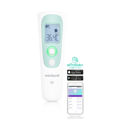 A través de la aplicación eMyBaby, thermoadvanced pharma se comunica con el smartphone y la Tablet para registrar las temperaturas tomadas, pudiendo llevar un seguimiento de las mismas en cualquier momento y lugar. Es posible utilizar el termómetro de forma aislada o con eMyBaby® .