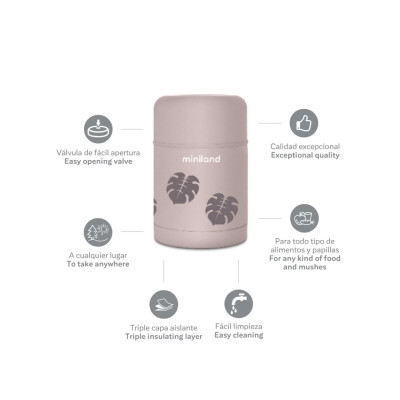food thermos tiene el tamaño ideal para llevar a cualquier lugar. La bolsa de neopreno cuenta con un asa con cierre de velcro, que permite colgarlo en el carrito con total comodidad. Además aísla de los cambios de temperatura ambiental, manteniendo aún mejor la temperatura de los alimentos fríos o calientes incluso más de 12 horas. Su cierre con doble tapa de rosca garantiza la mayor seguridad e higiene en el transporte de los alimentos.