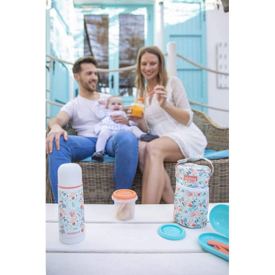 Práctica bolsa isotérmica para termos y biberones de 350ml. Proporciona una capa adicional de aislamiento para proteger los termos de los cambios de temperatura ambiental y asímantener su temperatura durante más tiempo.