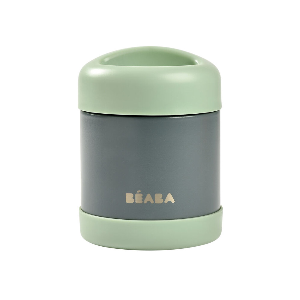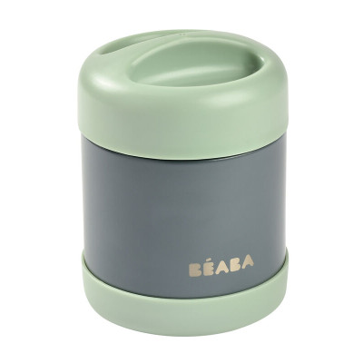 La Thermo-Portion isotérmica de acero inoxidable de Béaba se puede utilizar para transportar las comidas del bebé cuando se está fuera de casa.