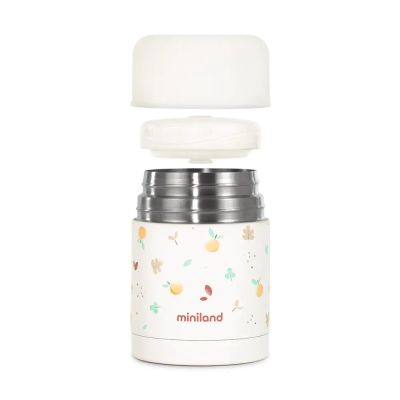 food thermos tiene el tamaño ideal para llevar a cualquier lugar. La bolsa de neopreno cuenta con un asa con cierre de velcro, que permite colgarlo en el carrito con total comodidad. Además aísla de los cambios de temperatura ambiental, manteniendo aún mejor la temperatura de los alimentos fríos o calientes incluso más de 12 horas. Su cierre con doble tapa de rosca garantiza la mayor seguridad e higiene en el transporte de los alimentos.