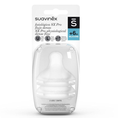La tetina Fisiológica SX Pro™ favorece el desarrollo bucodental del bebé, manteniendo la lengua en su posición fisiológica. Su diseño se adapta a las particularidades de la mandíbula y el maxilar, gracias a las recomendaciones profesionales más avanzadas. Avalada por la Sociedad Española de Odontopediatría. ¡Cuida la salud oral de tu bebé con la tetina fisiológica flujo L de Repuesto!