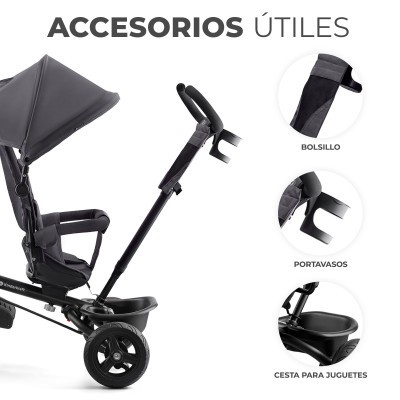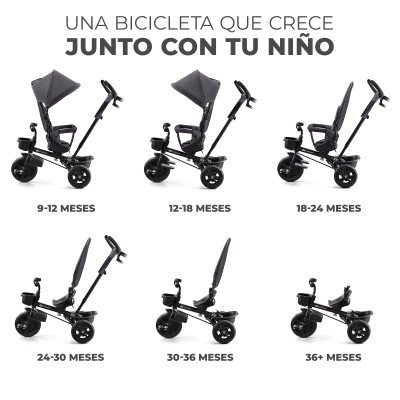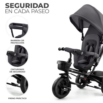 Es un triciclo que combina diversión y aprendizaje. Posee unas soluciones prácticas y cómodas para los padres que les permitirán manejar fácilmente el triciclo durante los paseos.