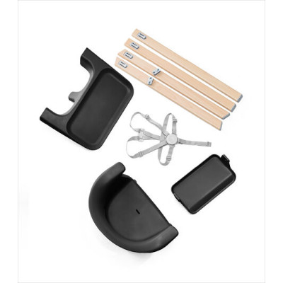 • Todas las piezas necesarias vienen incluidas: la trona, la bandeja y el arnés.