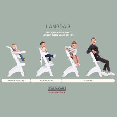 Tú y tu bebé disfrutaréis durante años de la trona Lambda 3 en blanco. Puedes usarla para bebés a partir de los 6 meses. El asiento y el reposapiés son fácilmente ajustables en altura sin el uso de tornillos. La bandeja o tableta de alimentación se puede plegar hacia atrás y se incluye una cubierta de plástico extraíble para proteger la bandeja para comer. Una barra de seguridad y un arnés de seguridad de 5 puntos garantizan la seguridad de su hijo. La barra de seguridad y arnés de seguridad son extraíbles, por lo que la trona es adecuada para niños más pequeños como trona y para niños mayores como silla normal. ¡Puedes usar la Lambda 3 como trona hasta 15 kg y como silla normal hasta 85 kg!