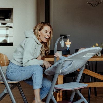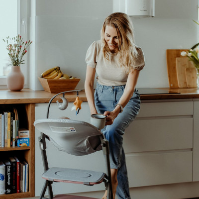 Para obtener una hamaca alta puedes comprar la hamaca CALMEE y juntarla con la trona LIVY. Así siempre tendrás a tu pequeño a la altura de los ojos.
