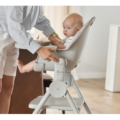 El sistema de arnés de cinco puntos garantiza máxima seguridad durante las comidas y el tiempo de juego