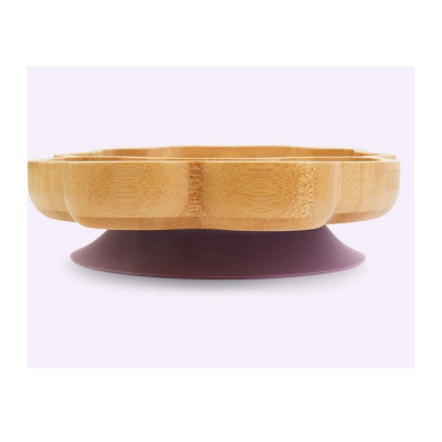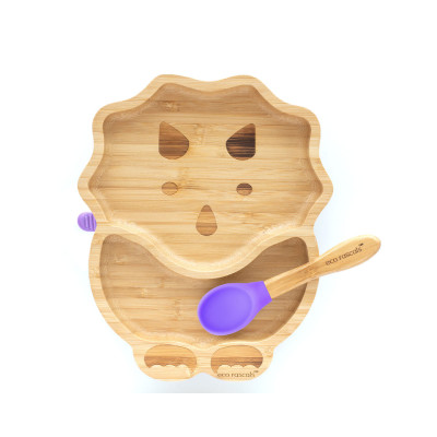 El plato de dinosaurio de bambú viene con una base con ventosa de silicona desmontable en colores de edición limitada: púrpura, verde y azul marino.