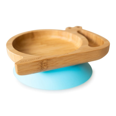 Soy un super plato con ventosa, mi base con ventosa de silicona desmontable viene en los cinco colores principales de eco rascals™ y funciona con un mecanismo hermético para garantizar que me sujete firmemente a la trona o la mesa.