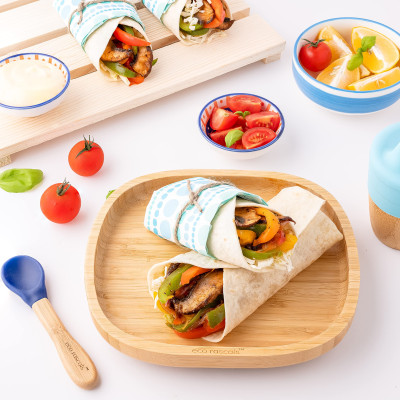• El plato abierto de bambú viene con una base con ventosa de silicona desmontable en colores de edición limitada: morado, verde y azul marino. La base con ventosa significa que los más pequeños pueden disfrutar de sus comidas sin la preocupación de mover tazones y platos que con demasiada frecuencia terminan en el suelo.