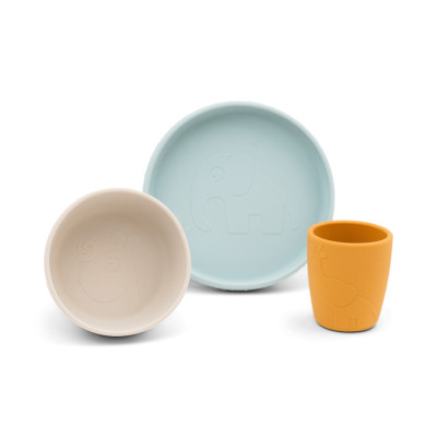 Prepara una mesa divertida con el juego de cena Silicone Stick&Stay y Elphee como acompañante.