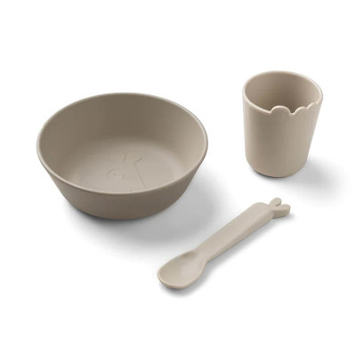 Raffi y Croco le harán compañía a tu pequeño en este lindo conjunto en suaves tonos arena. El juego de vajilla tiene una superficie sedosa y combina con el resto de la colección Kiddish.