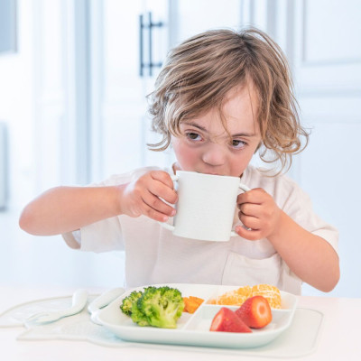 Los cubiertos con mangos gruesos y superficie antideslizante han sido especialmente diseñados para que su agarre sea sencillo, ayudando tanto a los más pequeños en las primeras etapas de la alimentación como a niños con dificultades motoras. Además, gracias a su flexibilidad, pueden ser utilizados indistintamente por zurdos y diestros. Por su parte, el vaso también cuenta con grandes asas, superficie antideslizante y una base gruesa y pesada que ayuda a su estabilidad.