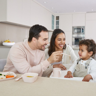 Los cubiertos con mangos gruesos y superficie antideslizante han sido especialmente diseñados para que su agarre sea sencillo, ayudando tanto a los más pequeños en las primeras etapas de la alimentación como a niños con dificultades motoras. Además, gracias a su flexibilidad, pueden ser utilizados indistintamente por zurdos y diestros. Por su parte, el vaso también cuenta con grandes asas, superficie antideslizante y una base gruesa y pesada que ayuda a su estabilidad.