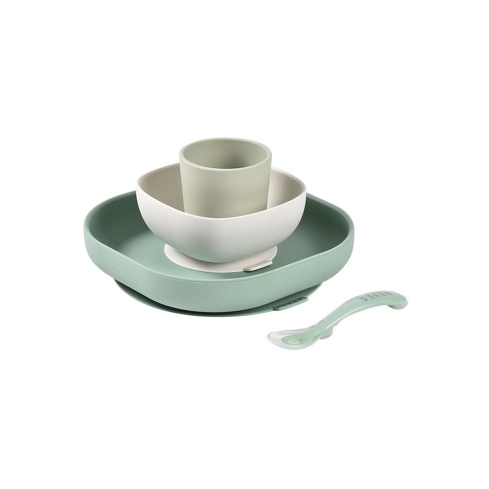 Babero silicona Béaba gris claro. Babero de silicona perfecto para tu peque cuando empiece a...