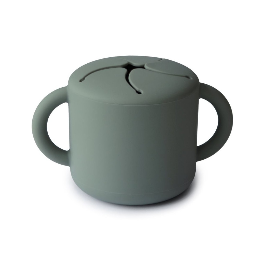El vaso para snacks es a prueba de derrames y está diseñada con cómodas asas en los costados para que el niño pueda agarrarla bien.
