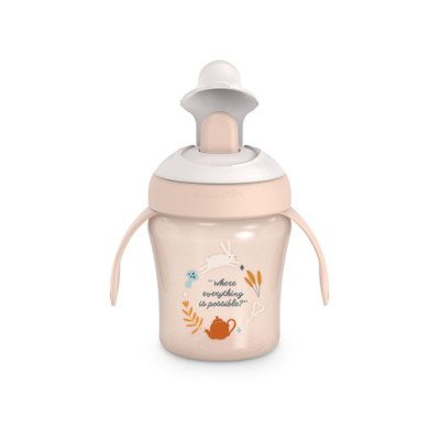 Vaso entrenamiento Wonderland Suavinex para bebés +6 meses con asas de quita y pon que le aportan independencia. Su forma ergonómica está pensada para manitas pequeñas. Con sistema antiderrame sin goteos y sin manchas. Con boquilla rígida anti-rasgado ideal durante el proceso de dentición. Está protegida por una tapa protectora proporcionando mayor higiene. El vaso entrenamiento Suavinex es apto para lavar en el lavavajillas. Con 0% BPA.
