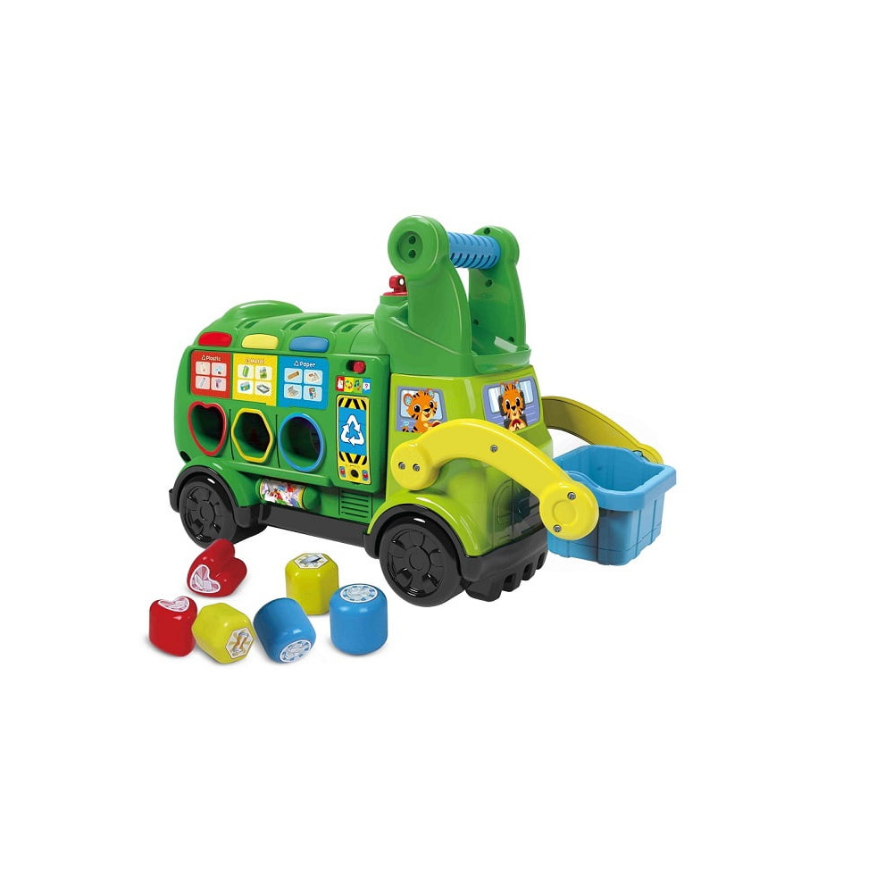 Es hora de dar una vuelta con el Camión de reciclaje de VTech. Con él aprenderás a reciclar para cuidar el medioambiente, separar objetos por su naturaleza, forma y color, así como posibles maneras de reutilizar materiales de un modo creativo. Todo ello acompañado de música, canciones, efectos y desafíos. Preparados, listos... ¡a reciclar!