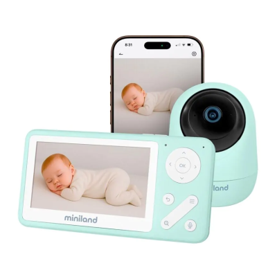 Digimonitor Anywhere de Miniland es un vigilabebés de vídeo con tecnología Dual, que permite visualizar al bebé tanto desde el monitor como desde el teléfono móvil mediante app. Esta doble opción de visualización ofrece mayor flexibilidad y control, adaptándose a diferentes rutinas y estilos de vida.